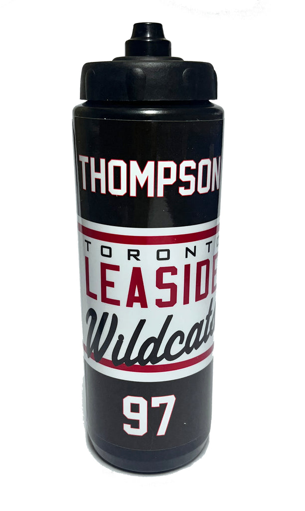 Outfit your entire team with matching personalized water bottles. Custom labels include player last name and number with team name and logo.  All decals are full wraps and wrap around the entire bottle with your logo/name/number on the front and back.